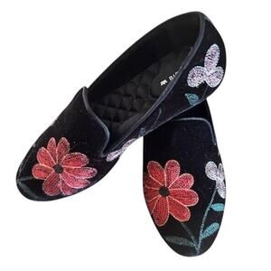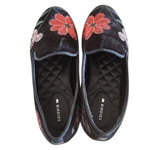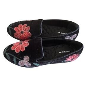 Birdies The Starling Floral Black Velvet Slip-On Loafer Flats – Size 6