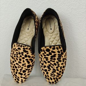 Birdies The Starling Leopard Slip On Genuine Calf hair Loafers Size 8.5 Women's
