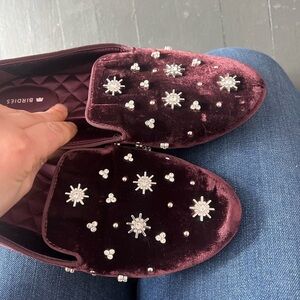 Birdies The Starling Loafers in Burgundy Velvet, size 7.5, light wear to sole and velvet