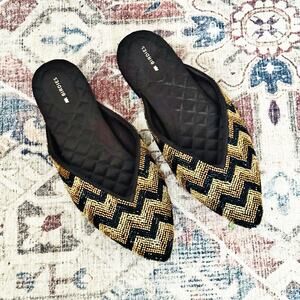 Birdies The Swan Deco Chevron Beaded Black Gold Loafers Flats Mules Size 8.5