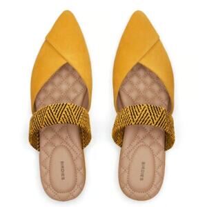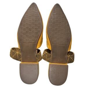 Birdies The Swan Flats Suede Cuff Mules Pointed Toes In Citron Yellow Size 8