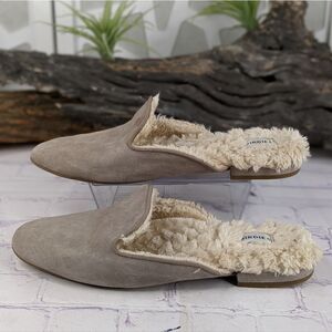Our elegant slipper is crafted with a supple faux-fur lining. This silhouette is our iconic Birdies smoking slipper but in a slide for convenience and comfort.