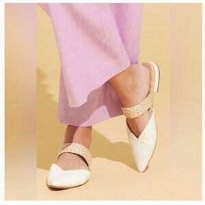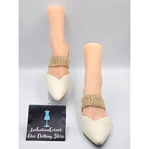 Birdies Women Cream Leather The Swan Cuff Pointed Toe Strap Mule Flats Sz 6 2404