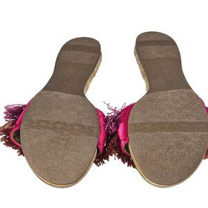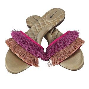 Birdies Women Fringed Slide Sandals 9 Pink Orange Resort Boho Comfort Vacation