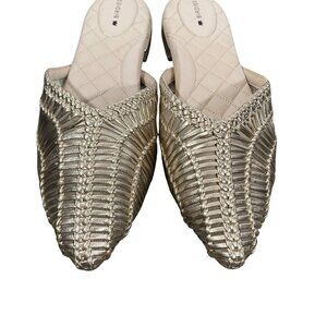 Birdies Womens Quilted Gold Woven Mule Flats Slip-On cushioned women’s 6 elegant