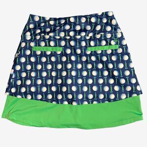 Birdies and Bows Golf ball tee Print Blue Green Skort XS