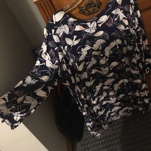 Loose knee-length, 3/4 sleeve dress. Navy with a white bird pattern all along the dress. Worn a few times but still looks brand new!