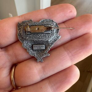 Birds And Blooms Pin Nesting Bird Brooch Pewter Heart Leaf Motif Avian Gray Pin