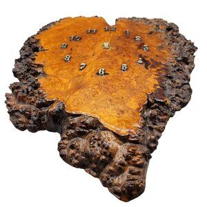 Birds Eye Maple Burlwood Wall Clock with Numbers 1970s Vintage AS IS