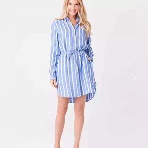 Birds Of Paradie Trovata Blue Stripe Classic Button Down Shirtdress Dress XS