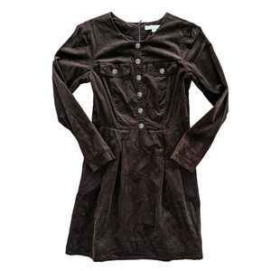 Yes, corduroy is back! Well, to us it really never left. This lovely long sleeve frock will keep you warm with it's long sleeves and nicely lined skirt. Cute pocket details and brass buttons have this dress ready for work or play! There is an invisible zipper located at the back of the dress!