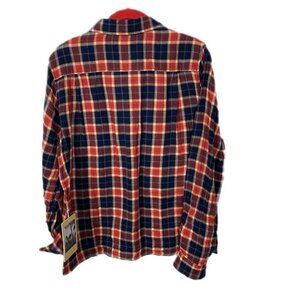 Birds of Paradis Beth Safari Shirt Plaid Button Down Red Navy Cotton– Size L NWT
