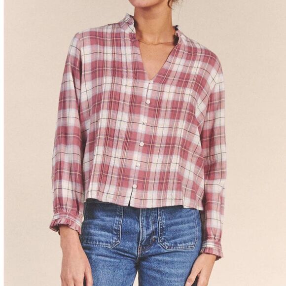 Birds of Paradis by Trovata Finley Pintuck Plaid Blouse Size L