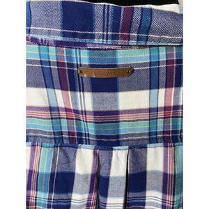 Birds of Paradis by Trovata Shirt Womens L Blue Plaid Roll Tab Sleeve Button Up