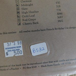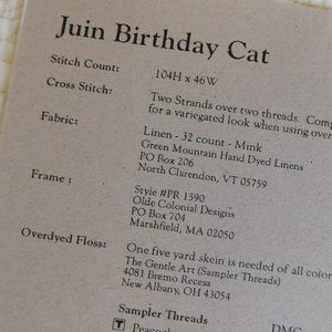 Rare Juin Birthday Cat cross stitch chart by Nancy Davis of BOAF.