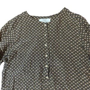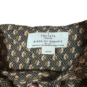 Birds of a Feather by Trovata Silk Dress Size Large. Gorgeous gently used condition with no flaws. Beautiful geometric pattern with blue, mustard, and pink details. Buttons down the front and long sleeves. Hits above the knee. Originally $368 from California brand. 100% silk.