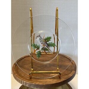 Birds painted On Clear Glass Plates Robin Goldfinch Blue Jay Tufted Titmouse