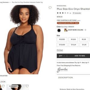 Birdsong Plus Size 20W Black Eco Onyx Sharkbite Underwire Tankini Swim Top Plus