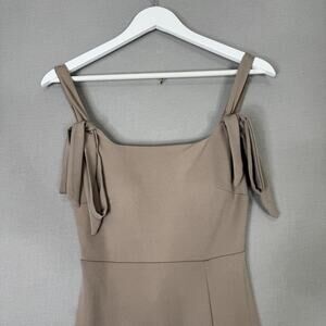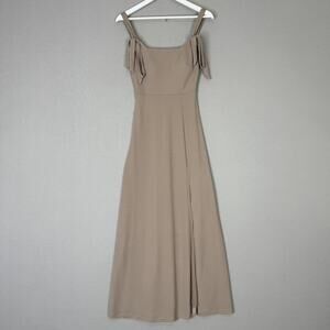 Birdy Grey Alex Crepe Maxi Dress Womens XS Taupe Formal Gown Bridesmaid Bow Tie