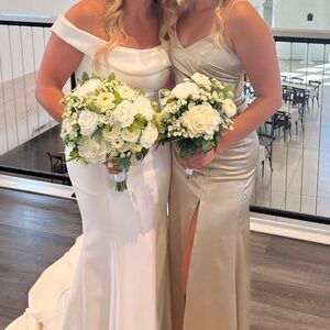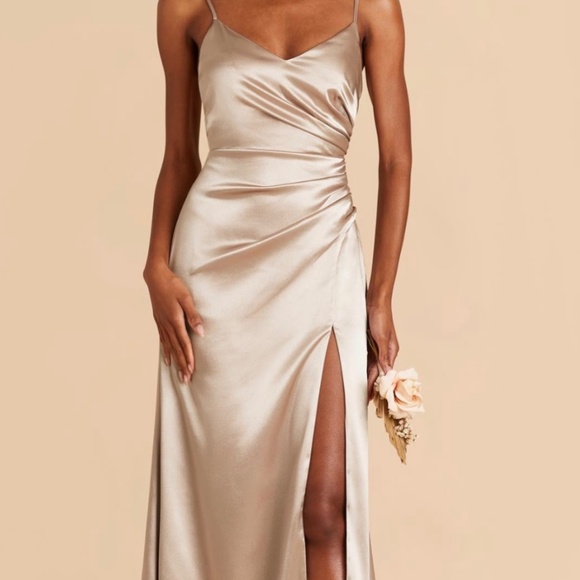 Birdy Grey Catherine Dress Shiny Satin Neutral Champagne