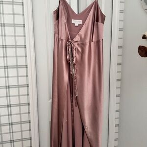 Birdy Grey Cindy Wrap Dress - English Rose Shiny Satin size large. Worn once for a wedding while 7.5 months pregnant. Had tailored to add button and ribbons to make wrap dress secure (no risk of flashing anyone on the dance floor - worked great). Hemmed for 5’ 6” with 2.5” heels. Very comfortable.