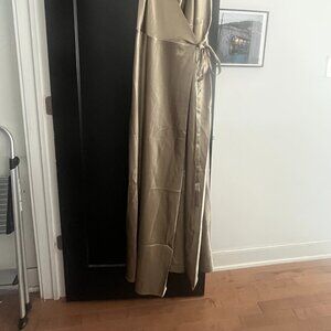 This wrap dress delivers on the sexy, with its deep-V neckline and a high slit. For optimum fit, wear a backless bra and wrap the dress as tightly as possible around your bust (where your bra band sits). Perfect for a wedding guest, bridesmaid or formal event.