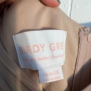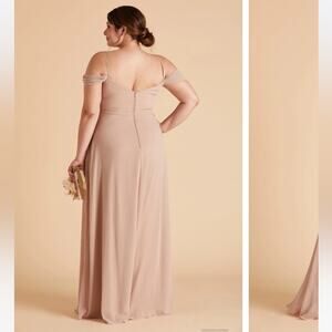 Birdy grey convertible devin dress. Chiffon material in taupe colorway. Approx 63.5 inches in length with adjustable straps. Sleeves can be converted and worn as a thin strap or with a sheer cap sleeve.