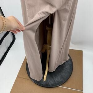 BIRDY GREY DRESS WOMENS XS EXTRA SMALL TAUPE ONE SHOULDER SLIT FRONT LINED MAXI