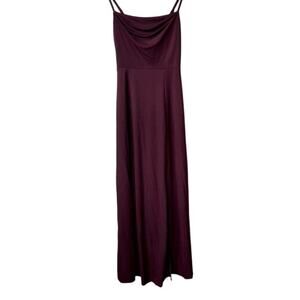 Birdy Grey Formal Maxi Dress XL Cabernet Maroon Front Slit Cowl Square Neck Long