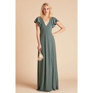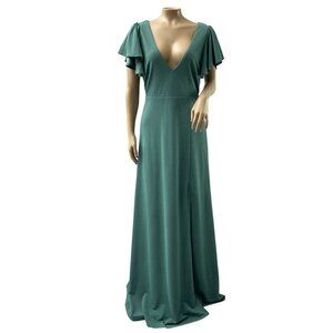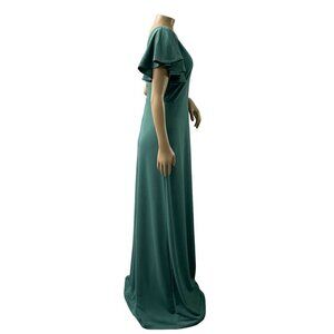 Birdy Grey Hannah Flutter Sleeves Crepe Sea Glass Maxi Formal Bridesmaid Dress M