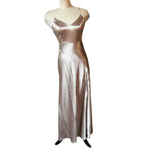 Birdy Grey Jay Strappy Tank Satin Dress Sz XS Taupe SEE NOTES Front Slit Spaghe