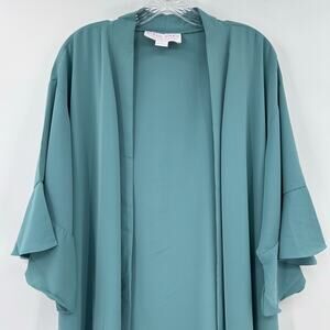 Birdy Grey Kenny womens robe in sea glass green. Midlength robe with ruffle detail at cuffs and hem. Can be worn out as a kimono. Size M/L. Belt is missing. Otherwise excellent used condition. See measurements for proper fit.