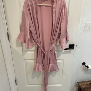 Satin robe with a flattering wrap design and ruffle bottom. Size XL/XXL