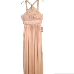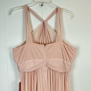 Birdy Grey bridesmaid gown, Kiko blush pink dress, NWT evening gown, formal halter maxi dress, Birdy Grey wedding guest dress, blush pink bridesmaid gown, elegant formal event gown, prom gala maxi dress, romantic blush evening gown, capsule event dress, bridal party maxi gown, Birdy Grey Kiko size large, trending bridesmaid dress, soft romantic pink gown, feminine ethereal maxi dress