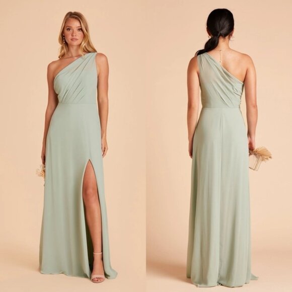 Birdy Grey Kira One Shoulder Chiffon Sage Bridesmaid Maxi Dress NWT