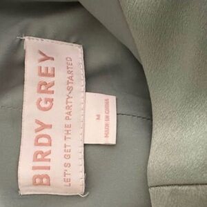 Elegant sage green maxi dress by Birdy Grey. Features a sleek design with a side slit. Perfect for formal occasions.