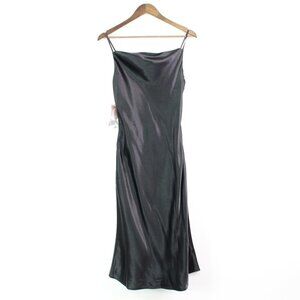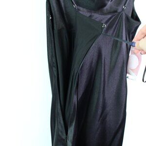 Birdy Grey Lisa Shiny Satin Midi Slip Dress Black Size S