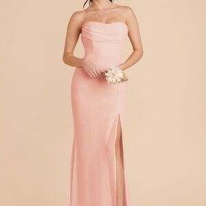 Worn once for a wedding, no visible stains and practically new condition. No alterations or hemming done so dress is still in the original length. Color is Blush Pink in chiffon.