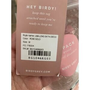 New with tags Birdy Grey Lisa Long Satin Dress in the color Rose Gold