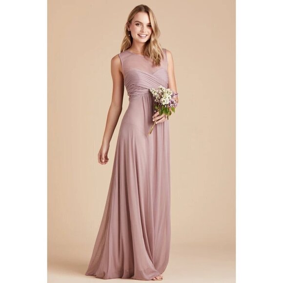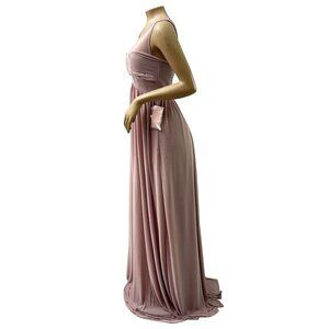 Birdy Grey Ryan Sheer V Back Maxi Formal Bridesmaid Dress Mauve Medium NWT