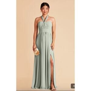 Birdy Grey Sage Green Long Maxi Chiffon Gown Size Small