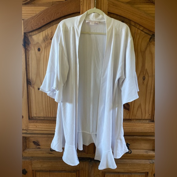 Elegant white robe by Birdy Grey. Lightweight and comfortable. A perfect bridal getting ready robe!