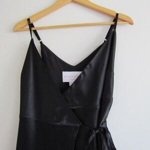 Birdy Grey "Cindy" dress - matte satin, wrap style, midi to maxi length, sleeveless and V-neckline. Black.