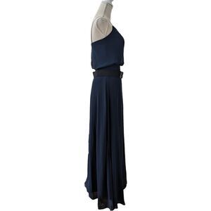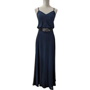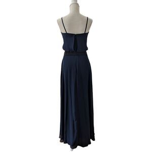 Birdy Grey Bridesmaid A-line Chiffon Crepe Maxi Dress Waist Belt in Navy Size XS