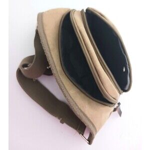 The Birdy brand Khaki Canvas Waist Fanny Pack is a versatile accessory suitable for both men and women. Made from durable canvas material, this fanny pack is designed for outdoor adventures with multiple zip pockets for convenient storage. The adjustable strap ensures a comfortable fit, while the lightweight design makes it easy to carry around. Perfect for keeping essentials close at hand while on the go, this fanny pack combines practicality with style for those who enjoy outdoor activities. 9X6 two individual zippered compartments. Large enough for a phone and other essentials. Pre owned, clean , no stains or rips.