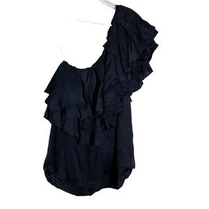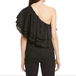 Birgitte Herskind Amelia Ruffle One-shoulder Snake Jacquard Blouse In Black