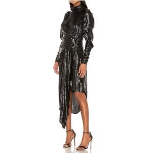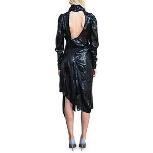 Birgitte Herskind Daisy Black On Black Metallic Leopard Asymmetrical Dress 4 NWT