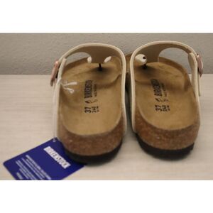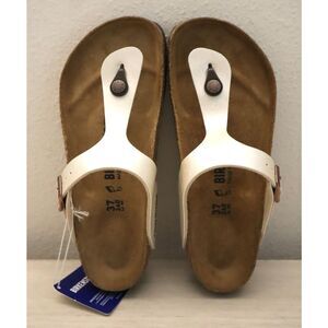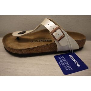 Birkenstock 0943871 Women Sz 6 Pearl White Leather Gizeh Birko-Flor Sandals