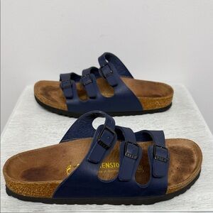 Birkenstock 38 W7/M5 Original Florida Birko Flor Stretta Soft Footbed, Blue.