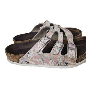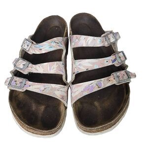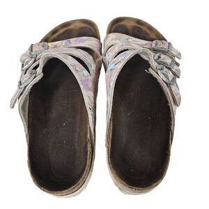 Pre-loved condition Birkenstock sandals size not visible it fits to size 8 foot. Please check photos.